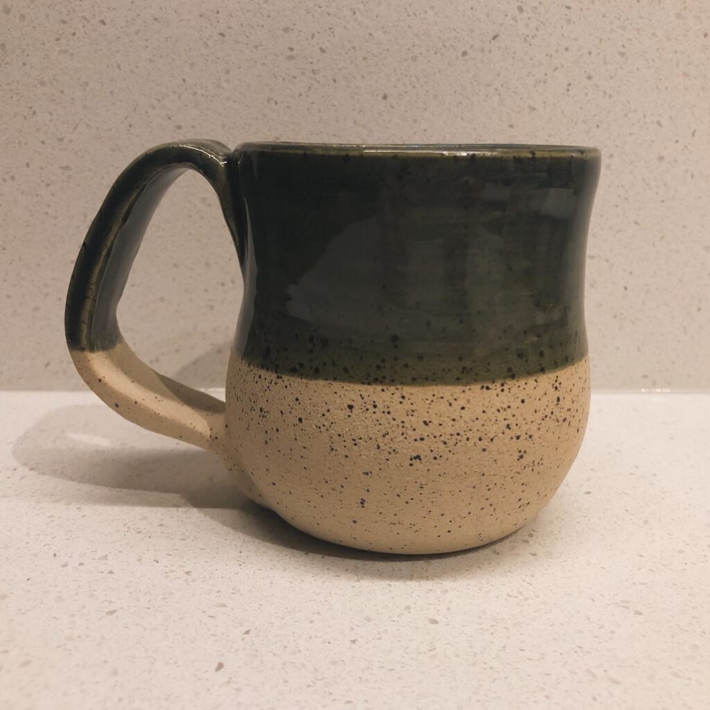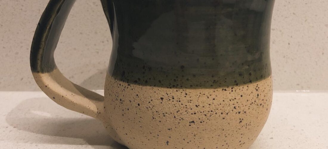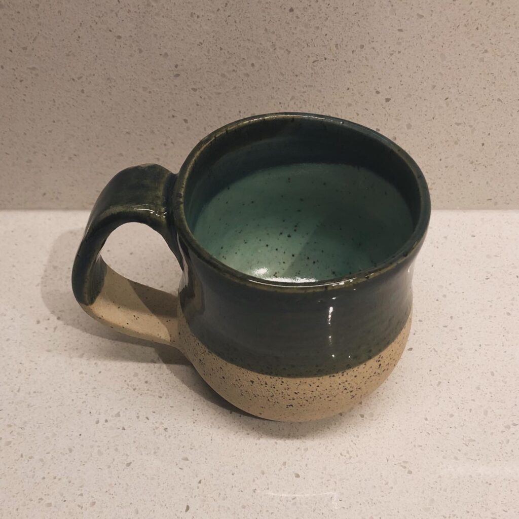 Cobaltic sea and celadon mug with raw clay base.